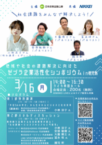 令和8年3月16日(月),日本政策金融公庫と日本経済新聞社が共催で,地域や社会の課題解決に向けた「ゼブラ企業活性化シンポジウムin鹿児島」を開催します。このイベントでは,日本経済新聞社の企画「データで読む地域再生」と連携し,地域や社会の課題解決に取り組むことの重要性について議論します。地域や社会の課題解決に取り組む方やこれから取り組む予定の方,これらの方の支援にかかわっている方等,ぜひご参加ください。